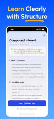 Tämä toistuva oppimissykli – opi, selitä, analysoi ja hio – auttaa vakiinnuttamaan tiedon pysyvästi. Einsteinin sanoin, jos et osaa selittää sitä yksinkertaisesti, et ymmärrä sitä tarpeeksi hyvin. Feynman AI auttaa sinua saavuttamaan todellisen hallinnan, oli tavoitteenasi sitten menestyä kokeissa, omaksua uusia taitoja työssä tai kehittyä itseoppijana. Seuraa edistymistäsi ja näe, kuinka ymmärryksesi syvenee ja selitystaitosi paranevat ajan myötä räätälöidyn palautteen ansiosta. Feynman AI on omistautunut oppimiskumppanisi matkalla kohti syvällistä ymmärrystä ja pysyvää tietoa.