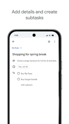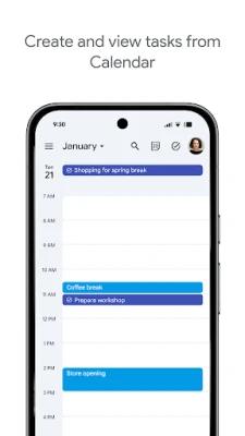 Pysy tehtäviesi tasalla Google Tasksilla. Luo ja hallitse tehtäviä, aseta muistutuksia ja synkronoi ne laitteidesi välillä. Integroituu saumattomasti Gmailin ja Google Kalenterin kanssa tehostaen päivittäistä suunnitteluasi. Hallitse tehtäviäsi helposti missä tahansa.
