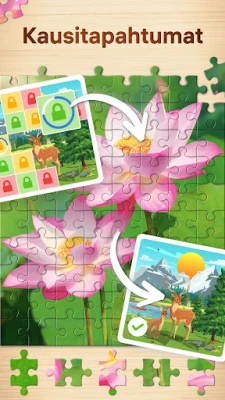 Jigsaw Puzzles kutsuu sinut tutustumaan laajaan ja jatkuvasti laajenevaan kuvagalleriaan, joka pursuaa korkealaatuisia ja visuaalisesti upeita palapelejä. Valikoima kattaa lukuisia teemoja aina eläväisistä luontokuvista ja hurmaavista eläimistä kiehtovaan taiteeseen ja ikonisiin maamerkkeihin. Voit mukauttaa vaikeustasoa helpoista, muutaman kymmenen palan kuvista todellisiin haasteisiin, joissa on jopa 400 palaa, varmistaen, että jokainen löytää itselleen sopivan kokemuksen. Lisäksi saat päivittäin uuden, ilmaisen palapelin, ja suorittamalla tehtäviä keräät kolikoita, joilla voit avata eksklusiivisia kokoelmia ja mysteeripalapelejä.
