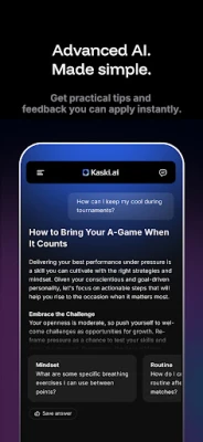 Kaski.ai paljastaa persoonallisuutesi suorituskyvyn ytimessä hyödyntäen tieteellisesti validoitua Big Five -mallia ja yli 20 000 datapistettä luodakseen kattavan kuvan ainutlaatuisista piirteistäsi. Tämä syvällinen itsetuntemus mahdollistaa harjoittelun ja kilpailutaktiikoiden räätälöinnin juuri sinulle sopivaksi. Sovelluksen älykäs tekoälyvalmentaja, *Egoton*, mukautuu saumattomasti persoonaasi, tavoitteisiisi ja harjoittelutyyliisi, tarjoten aidonoloisia keskusteluja, käytännönläheisiä vinkkejä ja mielen strategioita, jotka on hiottu parantamaan peliäsi. Olipa kyse paineensietokyvyn kehittämisestä tai itseluottamuksen rakentamisesta, *Egoton* antaa työkalut menestyäksesi ratkaisevilla hetkillä.