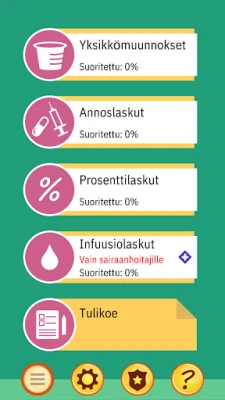 LääkeMaisteri on lääkelaskupeli hoitotyön opiskelijoille ja ammattilaisille. Treenaa yksikkömuunnoksia, annostelulaskuja, prosenttilaskuja ja infuusiolaskuja visuaalisilla apukeinoilla. Testaa osaamisesi lopun tulikokeessa.