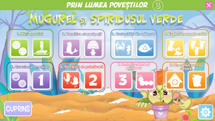 Tervetuloa "Prin lumea povestilor - Mugurel si spiridusul verde" -sovelluksen kiehtovaan maailmaan, joka on suunniteltu erityisesti 4–5-vuotiaille lapsille. Tämä ainutlaatuinen digitaalinen kokemus kutsuu nuorimmat sukeltamaan jännittäviin seikkailuihin, yhdistäen oppimisen ilon ja leikin riemun saumattomaksi kokonaisuudeksi. Olemme luoneet ympäristön, jossa lapsesi voi tutkia, kokeilla ja kehittyä turvallisessa ja innostavassa ilmapiirissä. Sovellus on täydellinen kumppani lapsen varhaiskasvatukseen, tarjoten rikastuttavan ja stimuloivan oppimisympäristön, joka tukee keskeisten taitojen kehitystä.
