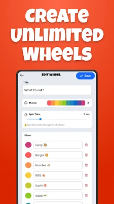Tämä ei ole pelkkä päätöksentekoväline; se on henkilökohtainen kumppanisi, joka mukautuu täysin sinun tyyliisi. Sukella syvälle räätälöintimahdollisuuksiin: valitse eloisia värejä, lisää tarttuvia tarroja ja luo teemoja, jotka heijastavat persoonaasi. Voit vaivattomasti tallentaa useita pyöriä eri tarkoituksiin – olipa kyse sitten päivän asusta, viikonloppuaktiviteetista tai tiimikokouksen päätöksestä. Jaa luomuksesi ja tulokset ystävien tai kollegoiden kanssa ja tee yhdessä päätöksenteosta jaetun kokemuksen.