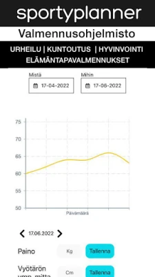 Sportyplannerin avulla syötät vaivatta sarjakohtaisen treenipäiväkirjan, merkitset harjoitukset tehdyiksi ja kirjaat omat liikuntasuorituksesi kalenteriin. Lisäksi voit seurata unen laatua ja painon kehitystä, joiden näkyminen ammattilaiselle helpottaa seurantaa ja tavoitteiden saavuttamista. Sovellus toimii saumattomasti yhdessä valmentajasi käyttämän selainohjelmiston kanssa, varmistaen, että saat aina ajantasaiset ohjelmat ja ohjeet suoraan puhelimeesi.